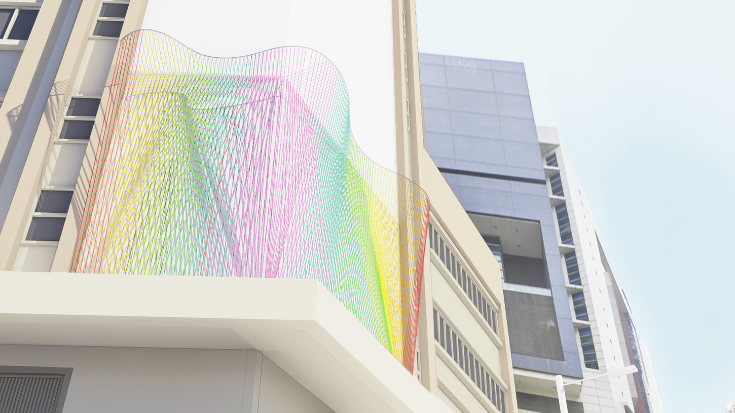 The use of colored lines within this woven structure represents the diverse communities that make up Tai Kok Tsui. The overall visual effect is dynamic and ever-changing, with the perception of the artwork shifting depending on the viewer's perspective and vantage point along the street.